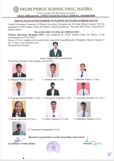 Hearty congratulations to Bitopan Bharali, the School Topper of AISSE 2026, on achieving an outstanding 99% aggregate!